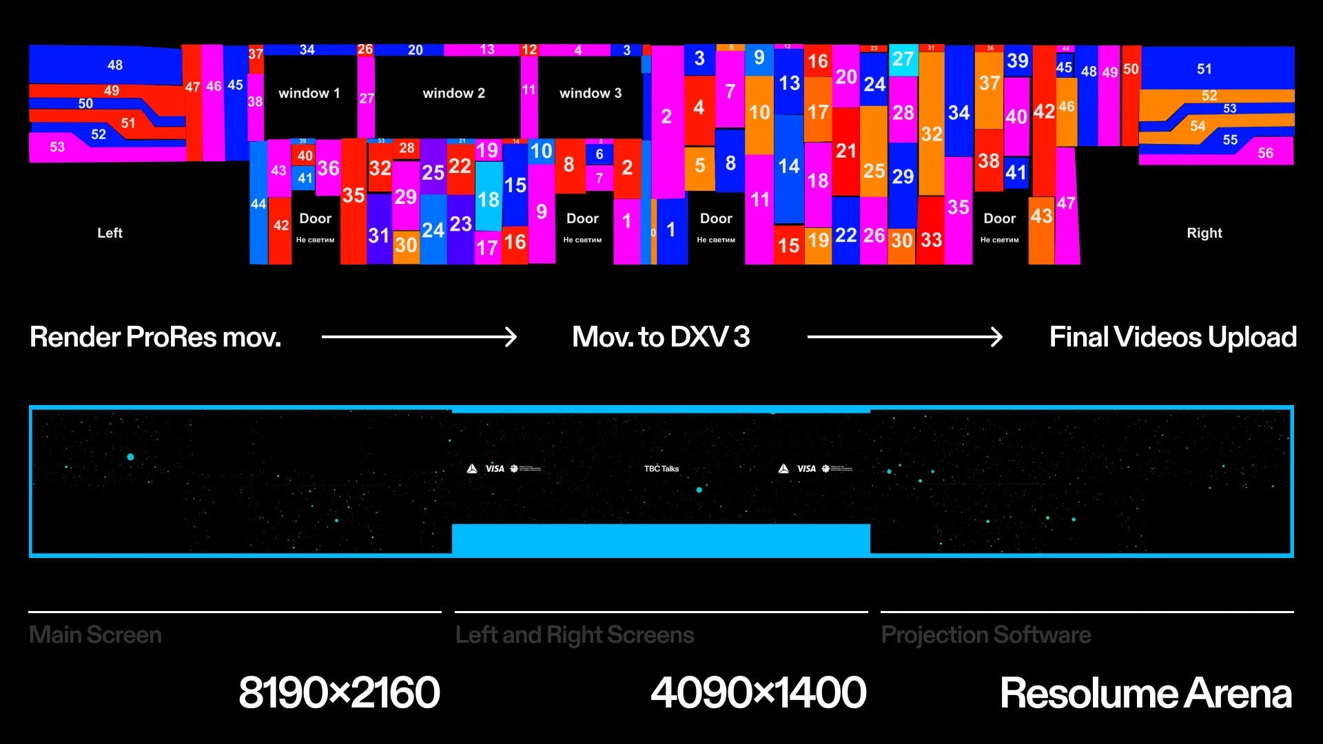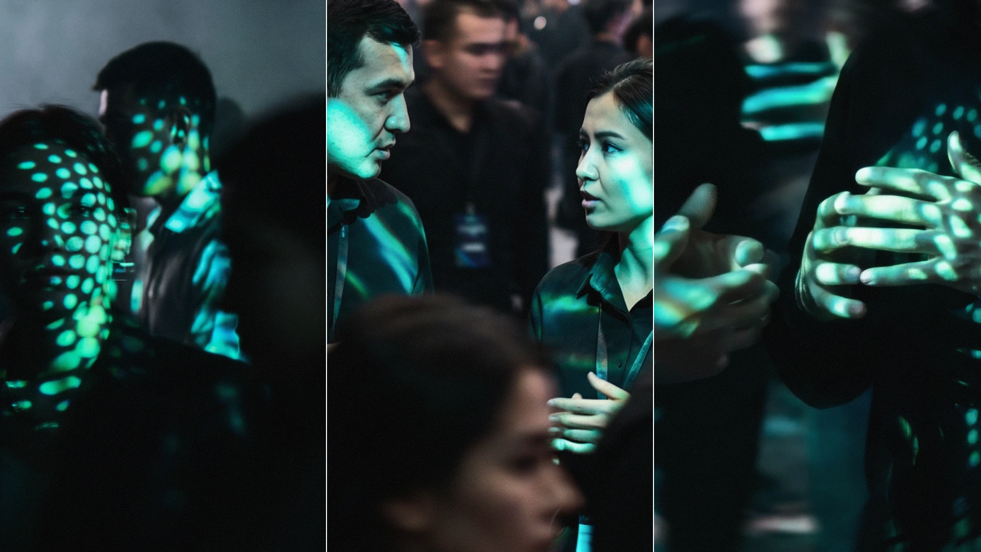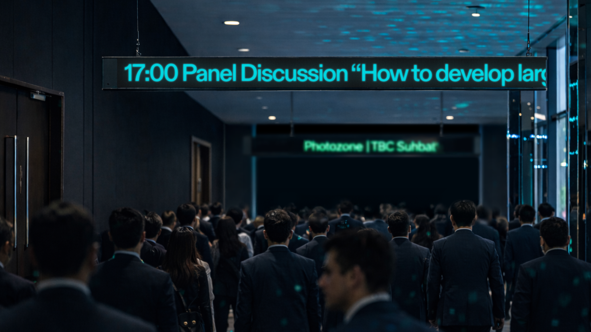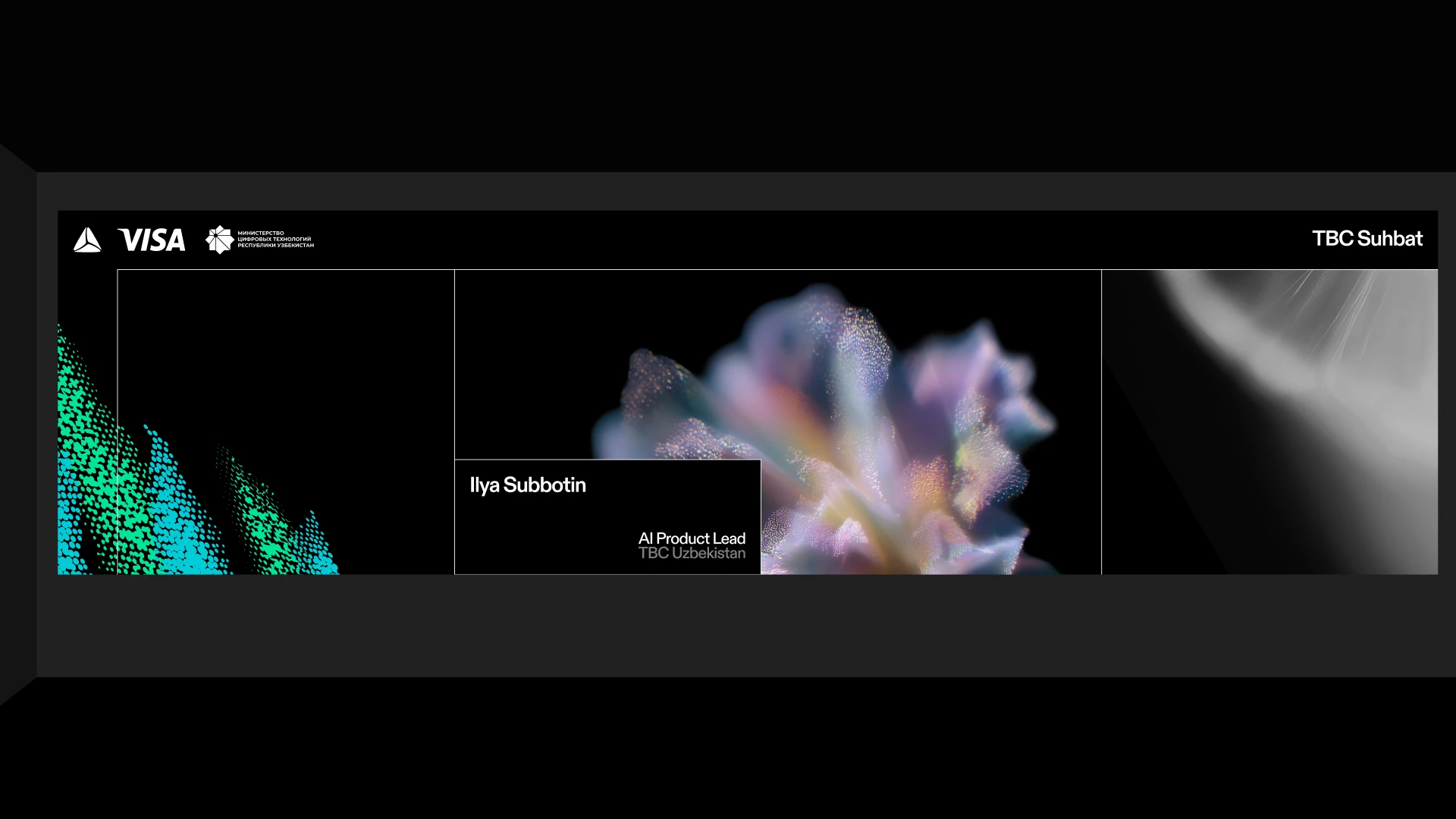 In the conference hall, large-scale screen animation and 3D mapping — developed with motion designer Ilkhom — extended the visual language onto the main stage.