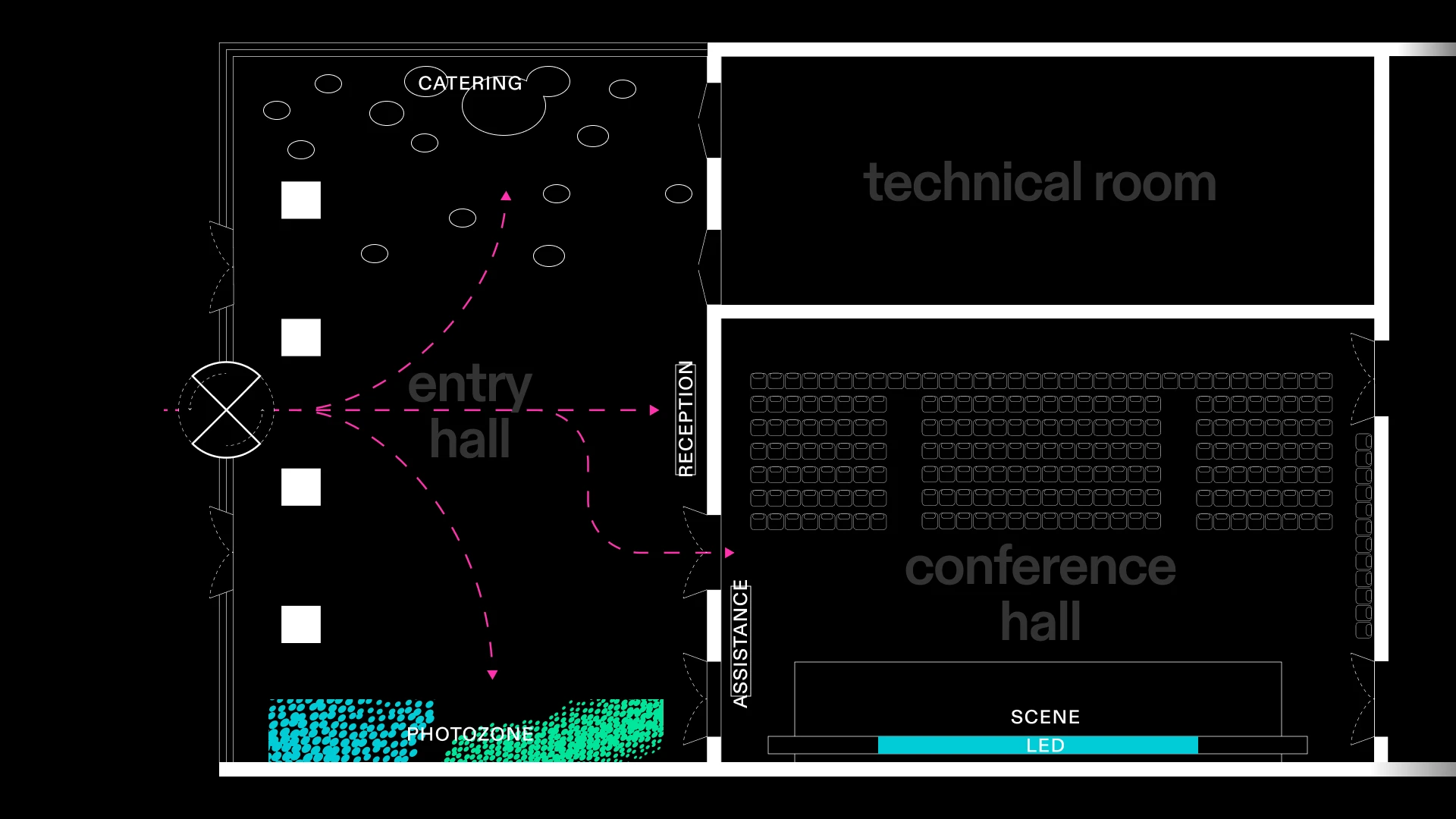 The spatial design separated two zones: networking and photo zone. The first one was placed near natural light, while the latter provided a strong visual backdrop for visitors and media.