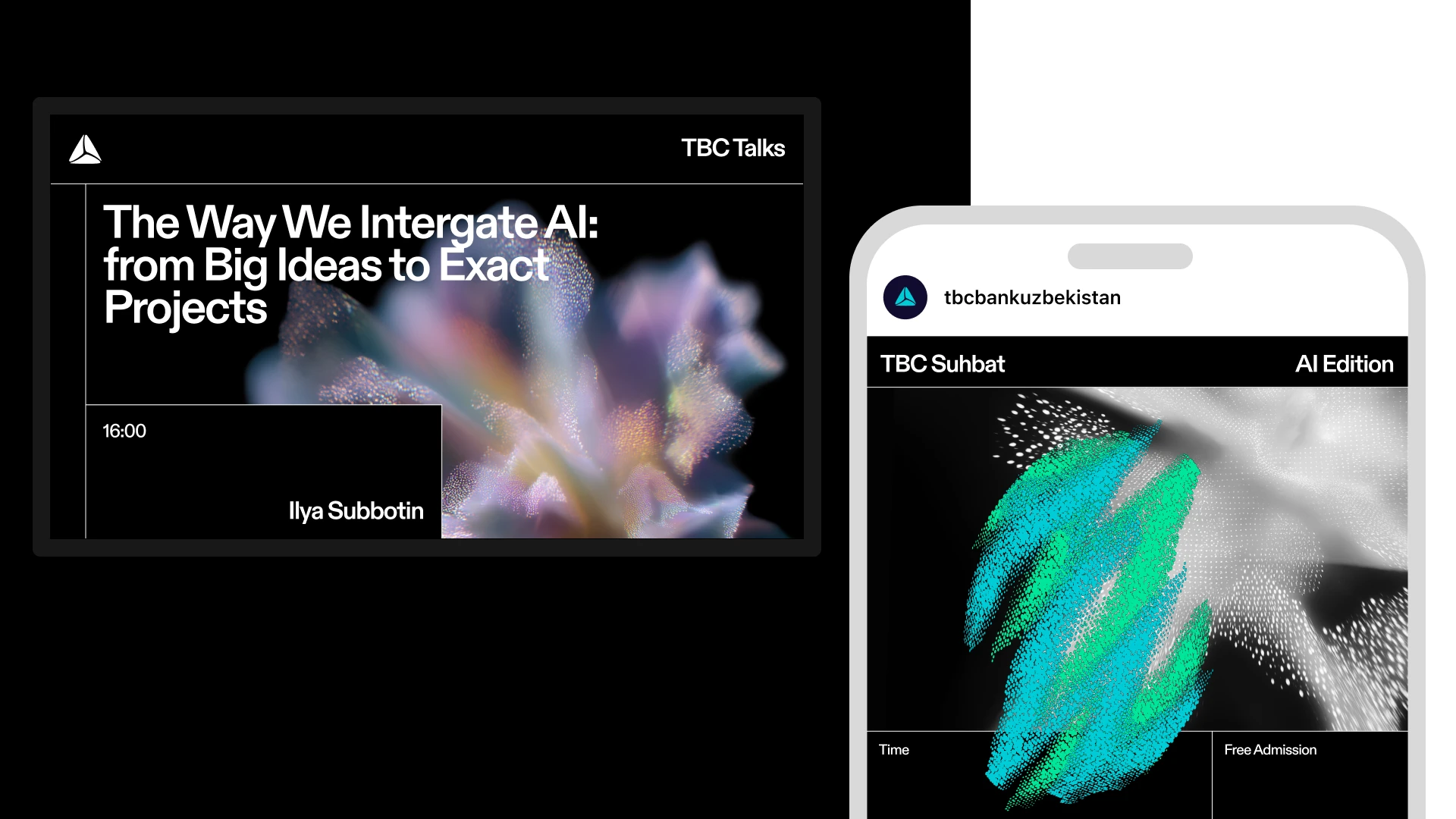 The core of my work was to create a framework for a series of events where TBC presents its achievements across different fields. We built the environment around a generative key visual — turning the photo zone into a central spatial element and increasing organic brand visibility in social media.